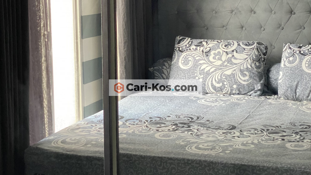Apartemen 2KT 1KM lengkap dengan perabotan dan nyaman, dispenser galon bawah, balkon menghadap kolam renang.
