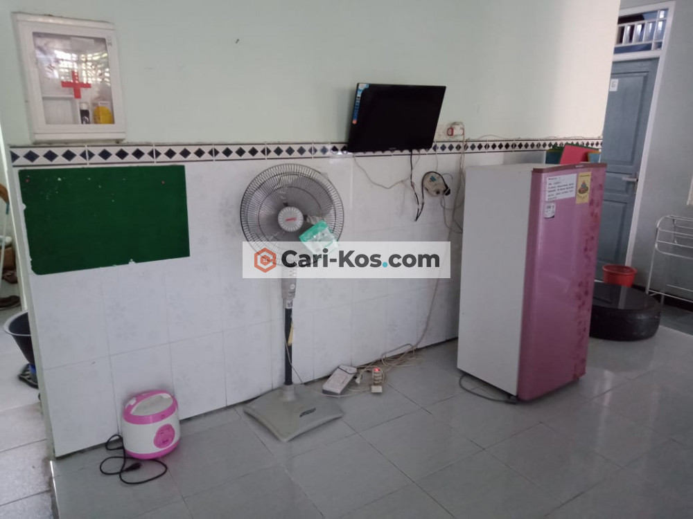 2. Fasilitas bersama: WiFi; dapur; ruang bersama yg berisi TV dan kipas angin; kamar mandi 2; tempat nyuci pakaian; tempat menjemur pakaian terbuka di rak dan tali; tempat jemuran tali yg beratap; area parkir; taman di depan kamar dan depan ruang tamu; ruang tamu