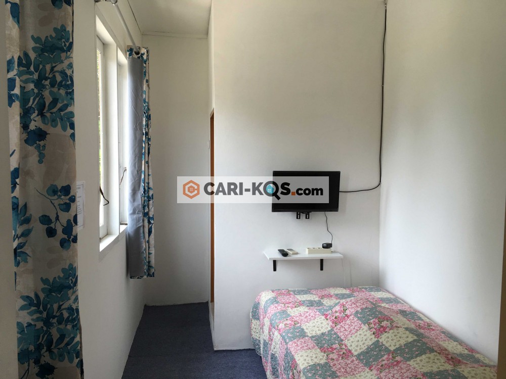 Fasilitas: AC, toilet dalam, kasur, lemari, wifi, dapur umum, dispenser umum, TV, satpam, akses 24 jam untuk penyewa dan parkir mobil dan motor,