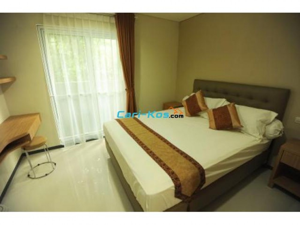 Fasilitas: Setiap Kamar dilengkapi dengan AC, spring bed queen size (160cm) atau extra twin (120cm), sprei,bed cover, lemari pakaian, meja kerja dan kursi, rak buku, nachkas, gorden, TV flat 32″ atau 29″, TV kabel, internet, kulkas. Dengan kamar mandi pribadi dilengkapi air panas/dingin dan handuk.Cuci-setrika dan perapian kamar setiap hari, Wi-Fi.