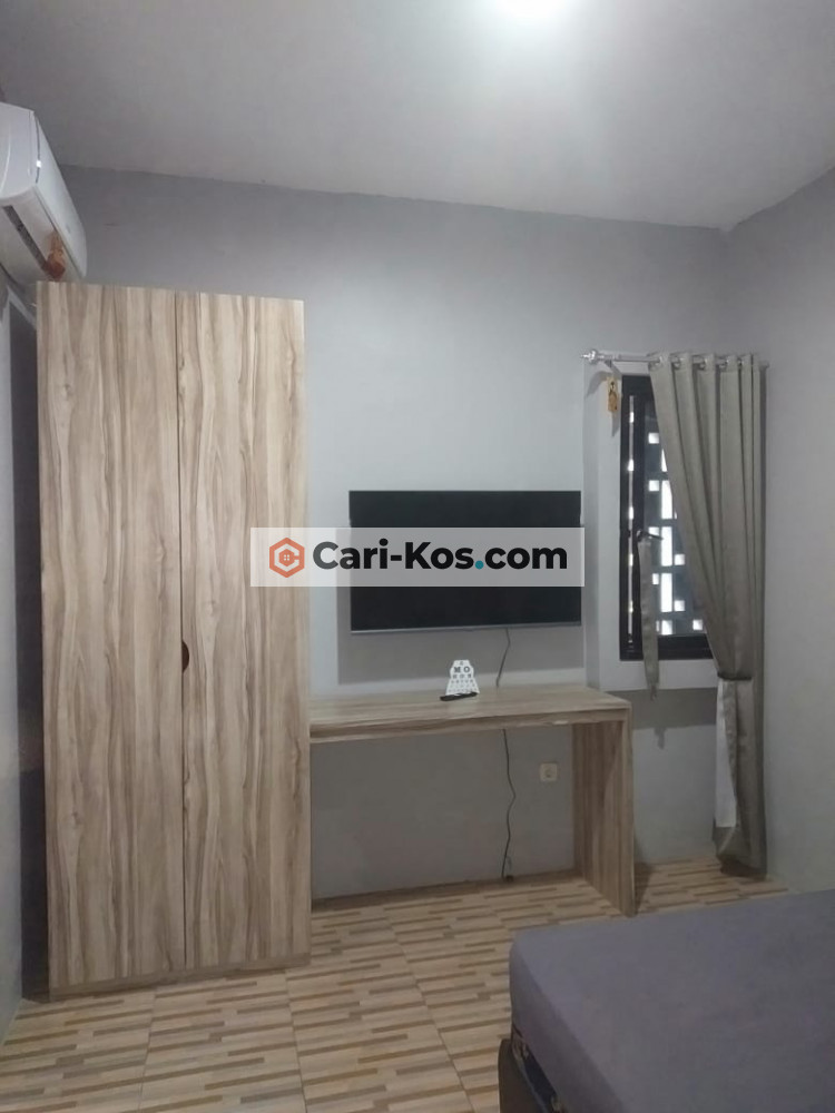 Fasilitas kamar: AC, wc dalam, water heater, shower, closet duduk, spring bed ukr 160, jendela disetiap kamar, meja & kursi belajar, lemari