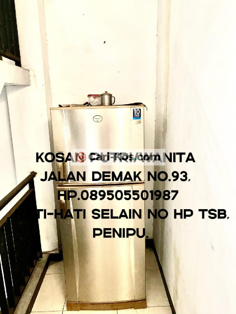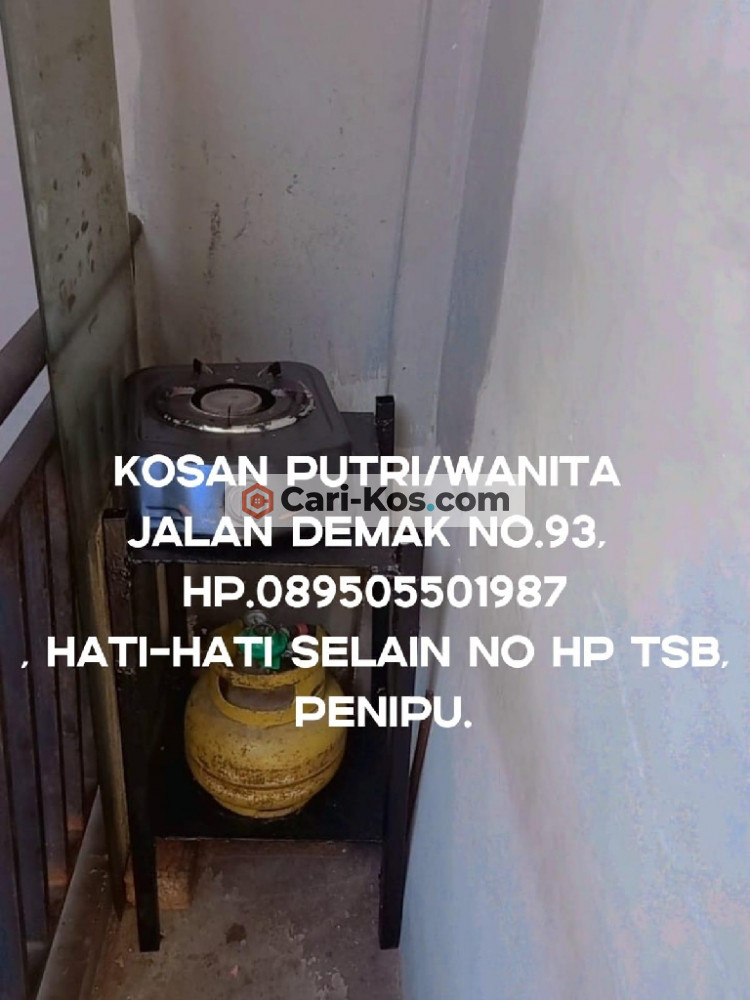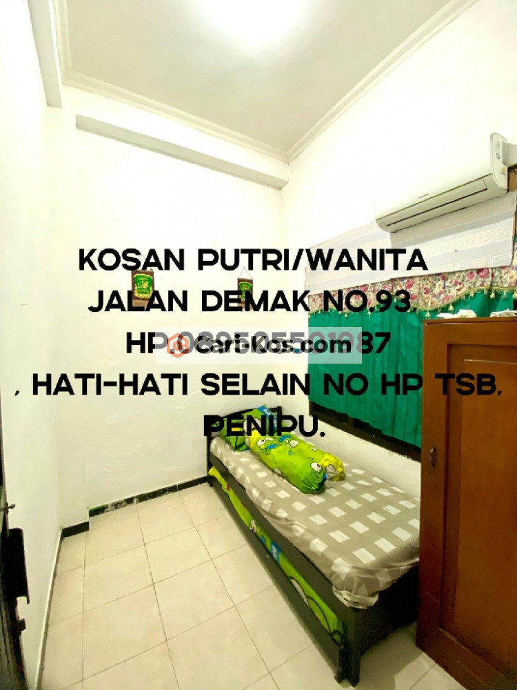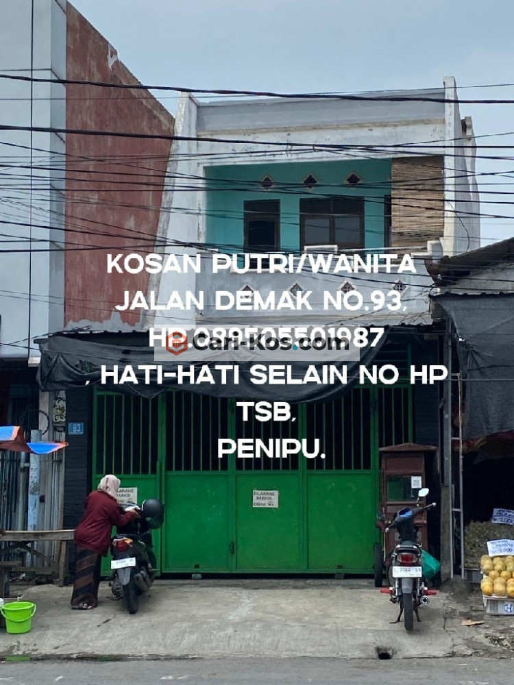 Rumah kos khusus wanita, menyediakan kamar kos harian/mingguan /bulanan untuk karyawati dan juga mahasiswi, kosan ini terletak di daerah jalan raya Demak nomor 93 Surabaya, lokasi pinggir jalan raya dekat dengan gerbang TOL pasar Turi, monumen tugu pahlawan, Tanjung Perak, lokasi di tengah Kota Surabaya, harga kos bervariasi fasilitas AC , tempat tidur bed, bantal, guling, meja kursi, lemari, cermin, kulkas , TV tempat masak, area Cuci baju, area jemur outdoor, Wi-Fi, parkir motor, akses kosan ini sangat strategis dengan perkantoran kawasan kota Surabaya sebagai catatan kami tidak menerima uang tanda jadi atau DP Ataupun transfer langsung datang ke lokasi hati-hati penipuan persediaan terbatas.