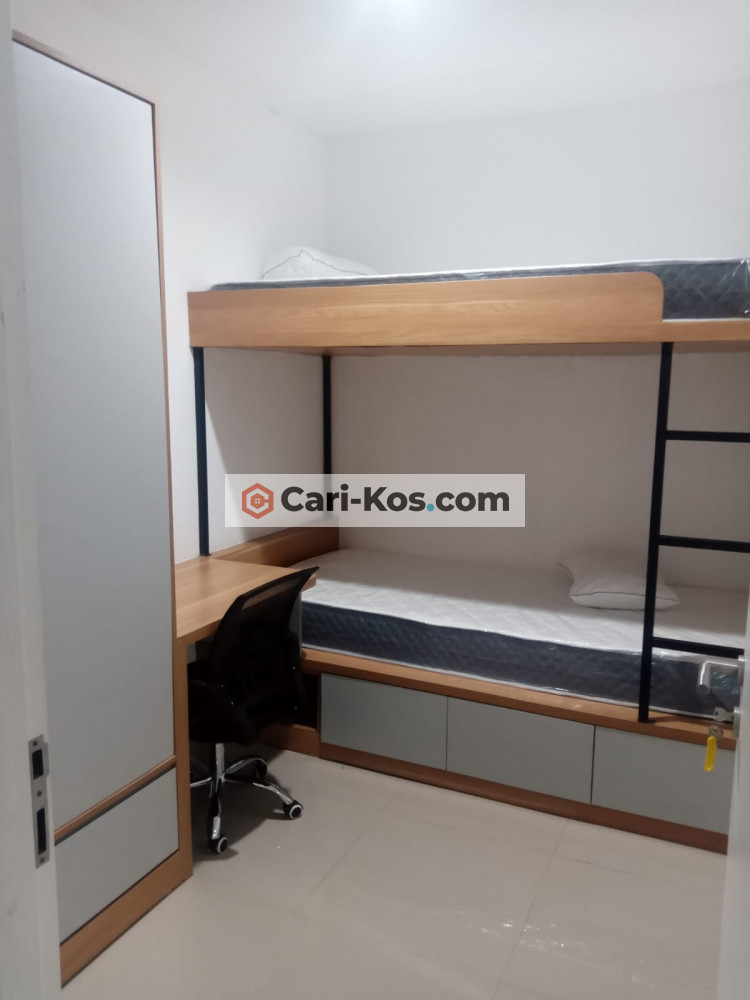 Gedung baru dengan suasana terang dan bersih. Design kamar modern dengan springbed dilengkapi dengan lemari, meja dan kursi kerja yang nyaman.