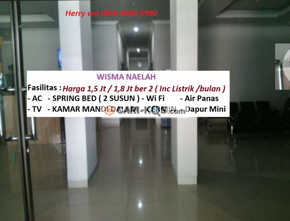 Harga : 1,55 Juta atau 1,8 Juta / bulan (* termasuk Listrik ) dan daya tamping 2 orang