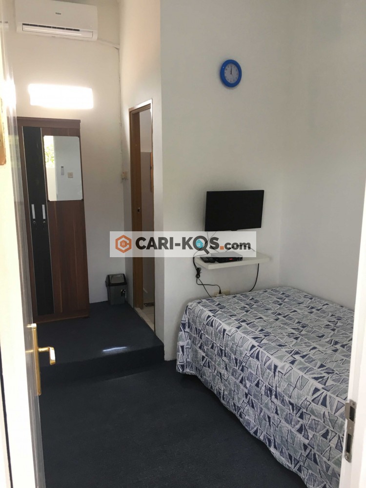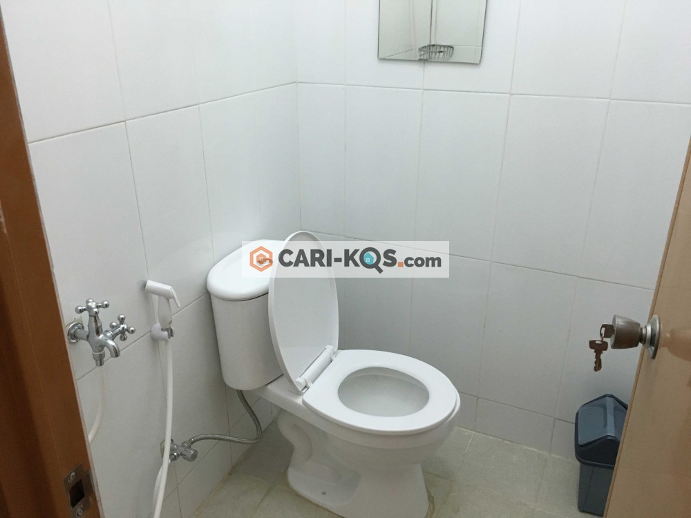 Fasilitas: AC, toilet dalam, kasur, lemari, wifi, dapur umum, dispenser umum, TV, satpam, akses 24 jam untuk penyewa dan parkir mobil dan motor,
