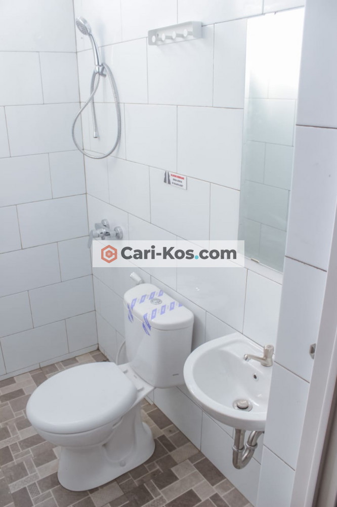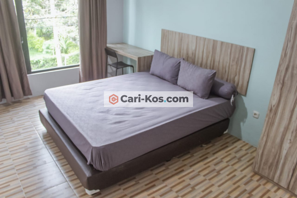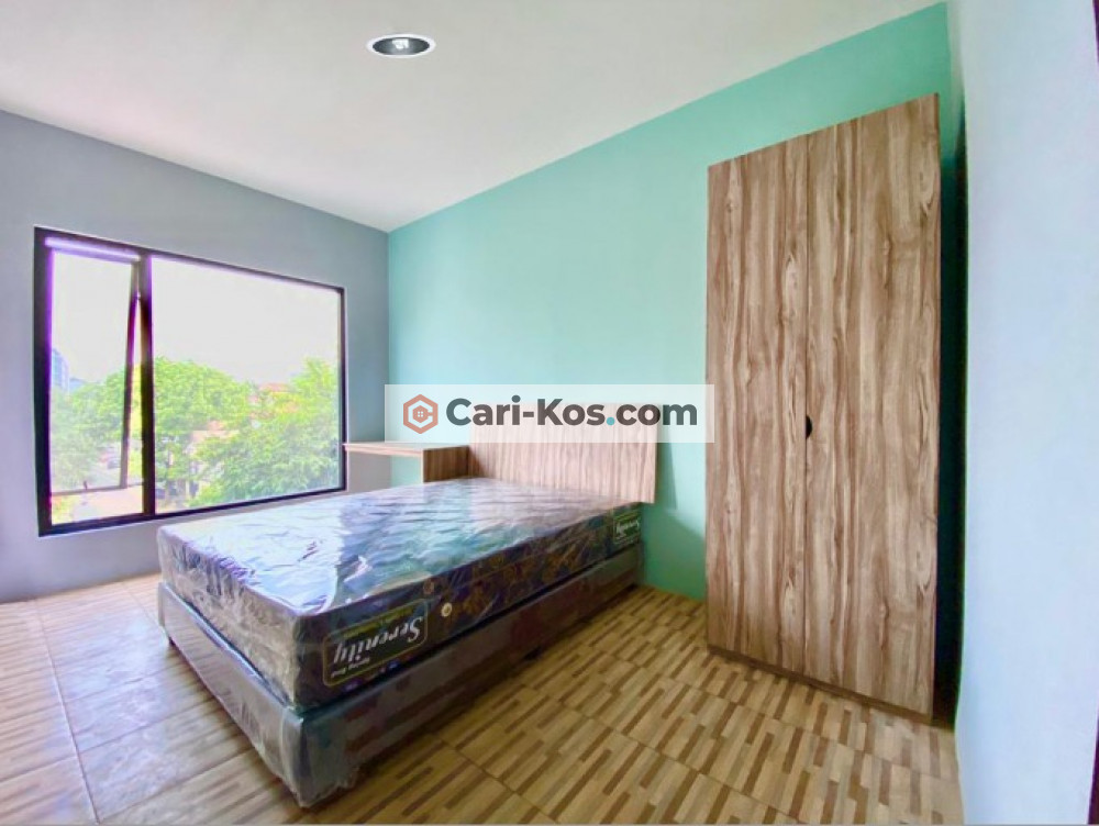 Fasilitas kamar: AC, wc dalam, water heater, shower, closet duduk, spring bed ukr 160, jendela disetiap kamar, meja & kursi belajar, lemari