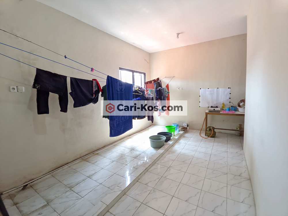 Terdapat meja kecil di depan kamar untuk menaruh alat masak. Toilet menggunakan air PDAM dengan kloset jongkok. Ada tempat untuk menjemur dan mencuci baju. Kamar sudah termasuk kasur dan lemari pakaian.